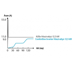 Amikor a Comfortline Inverter medencefűtés bekapcsol, az áramfelvétele 0 A-tól egyenletesen növekszik, amíg el nem éri a névleges áramfelvétel értékét kb. 2 perc alatt. Ez nem terheli meg otthona villamosenergia-rendszerét. Ezzel szemben a Be/Ki üzemű hőszivattyú gyakori indítási áramfelvétele a névleges áram ötszöröse, ami terhet jelent a villamosenergia-rendszer számára.