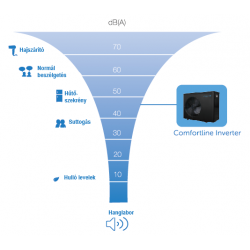 A csendes DC-inverter kompresszornak, a kompresszor és a ventilátormotor alacsony fordulatszámú működési elvének köszönhetően a Comfortline Inverter medence hőszivattyú szupercsendes működést kínál 7dB (A) alacsonyabb hangnyomás mellett, ÁTLAG 50% -os kapacitásnál.