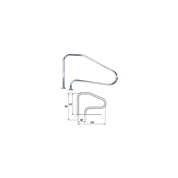 Kitűnő minőségű rozsdamentes kapaszkodók, polírozott AISI316 / V4A anyagból, D43 mm átmérőjű csőből. Karimás rögzítéssel szállítva.
