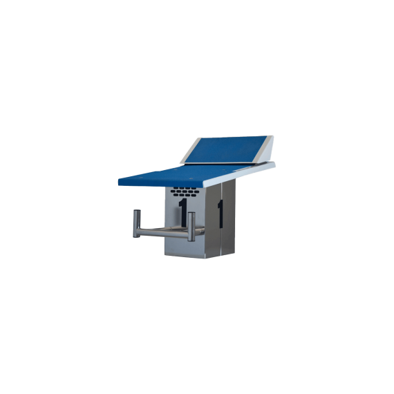 Olimpia AISI-316 rozsdamentes acélból készült, elektropolírozott. Üvegszálas platform csúszásgátló állítható támasztékkal. Készülék öt különböző pozícióba állítható. Hátsó nyílás a elektronikus időzítő hangszóró. Számozás 4 oldalon. 400 mm magasság. Kompatibilis a Relay Break funkcióval észlelési rendszer rögzítővel.