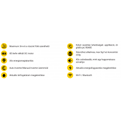 - Külső vezérlési lehetőségek: applikáció, digitális jel, RS485