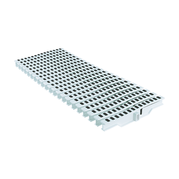 PP (polipropilén) túlfolyó rács egyenes eleme. Antracit színű. Az ergonomikus kialakításnak köszönhetően kényelmes és a gumibetétek csúszásmentes felületet biztosítanak.