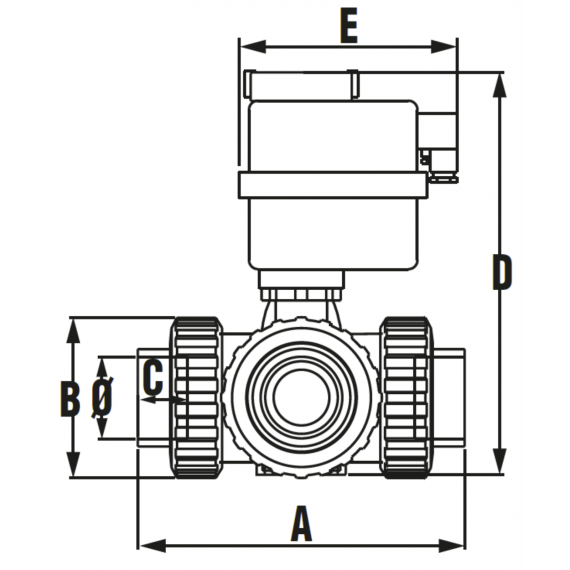 Motoros golyóscsap 3 utas PTFE "T" D63